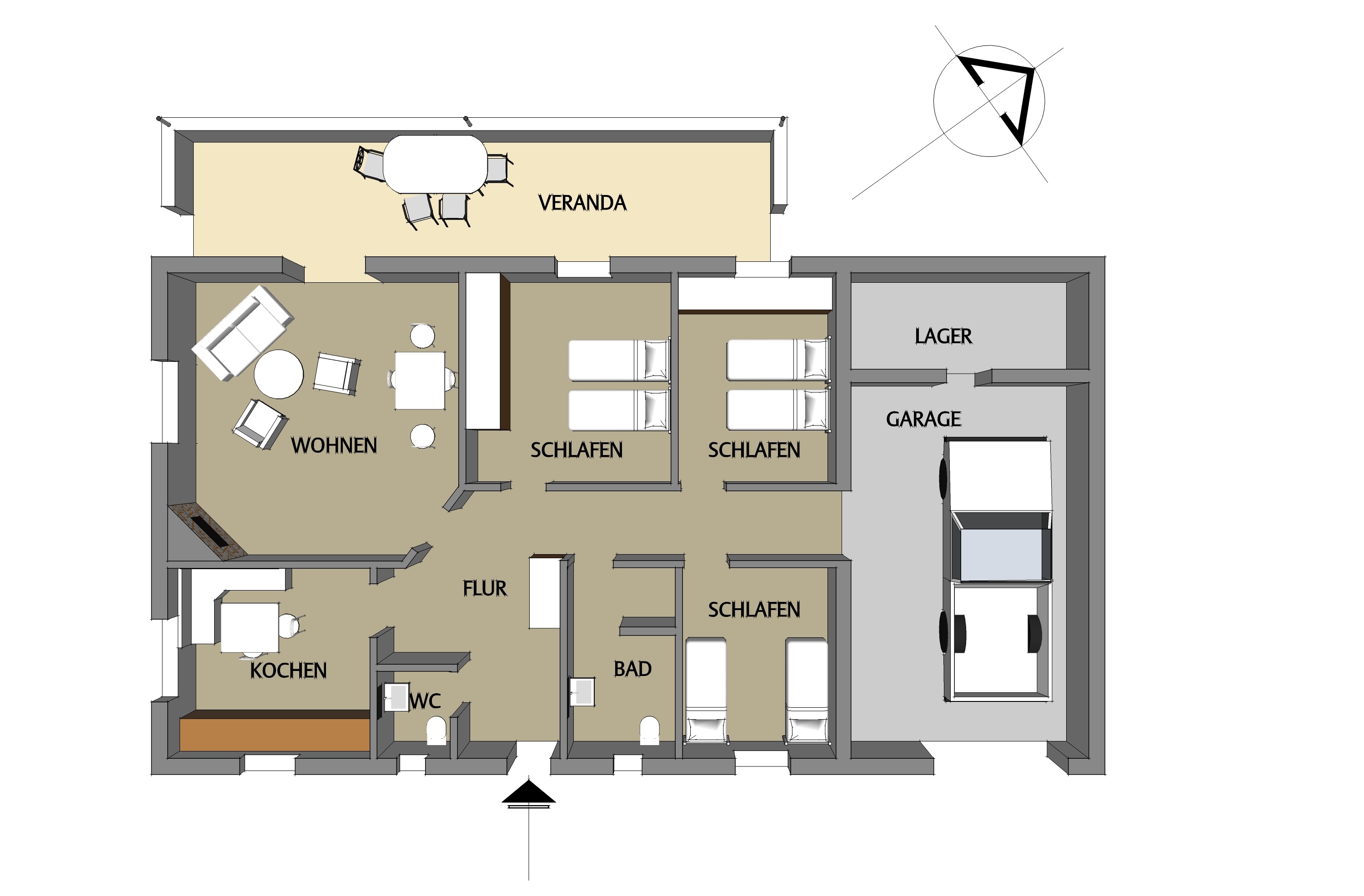 Der Gäste-Bungalow Springbock House hat 2 Doppel-Schlafzimmer sowie ebenfalls ein Bad mit Dusche, ein separates Gäste-WC, ein großes Wohn-Esszimmer, eine Einbauküche und eine überdachte Terrasse.